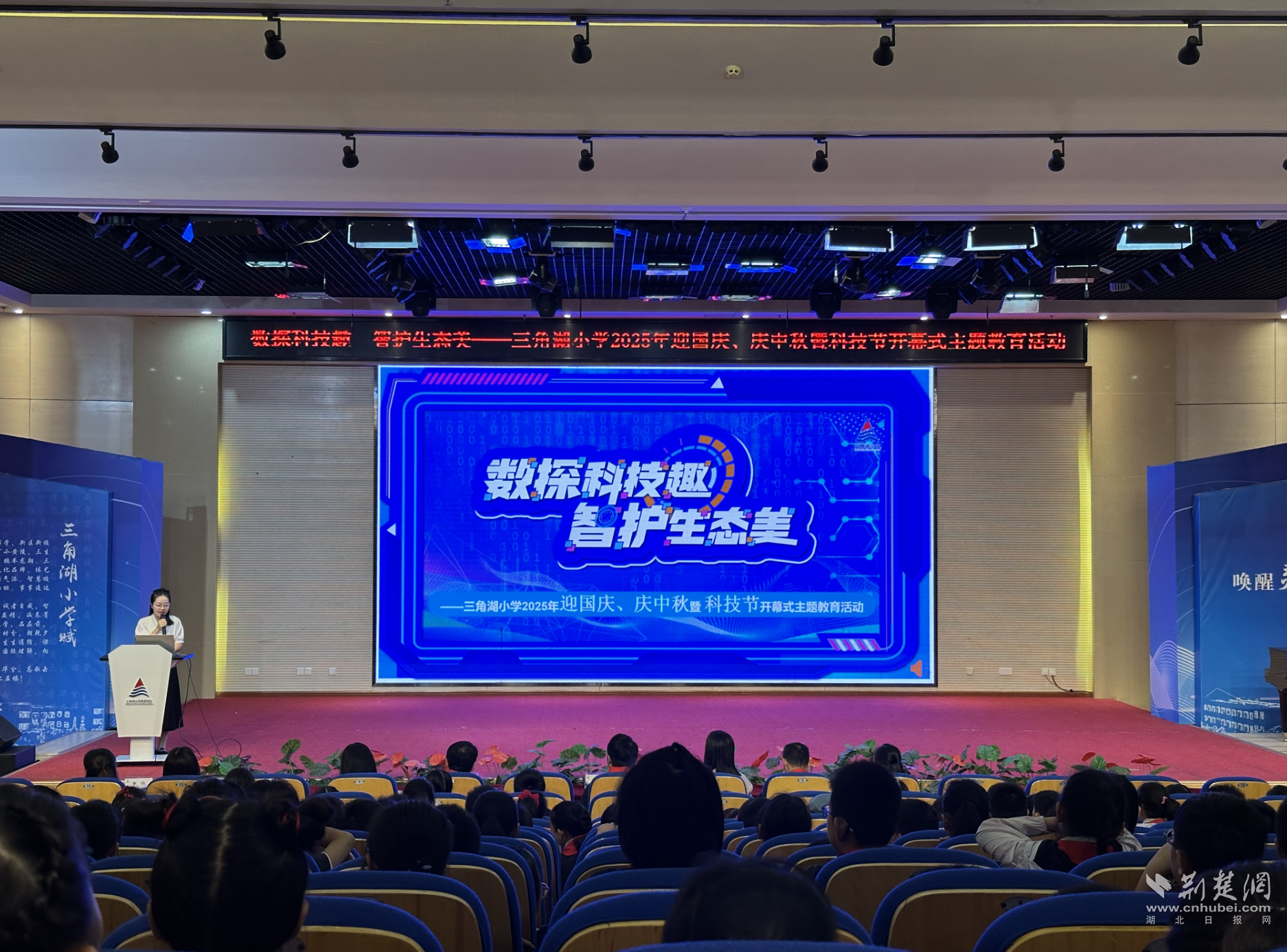 荆楚网(湖北日报网)讯(记者林杉 通讯员周怡飞)9月29日,武汉经济技术开发区三角湖小学以“数探科技趣 智护生态美”为主题,举行2025年迎国庆、庆中秋暨科技节开幕式主题教育活动,在对家国的深情祝福中,一段融合科学探索、数学应用、人工智能与生态守护的奇妙旅程正式启航。